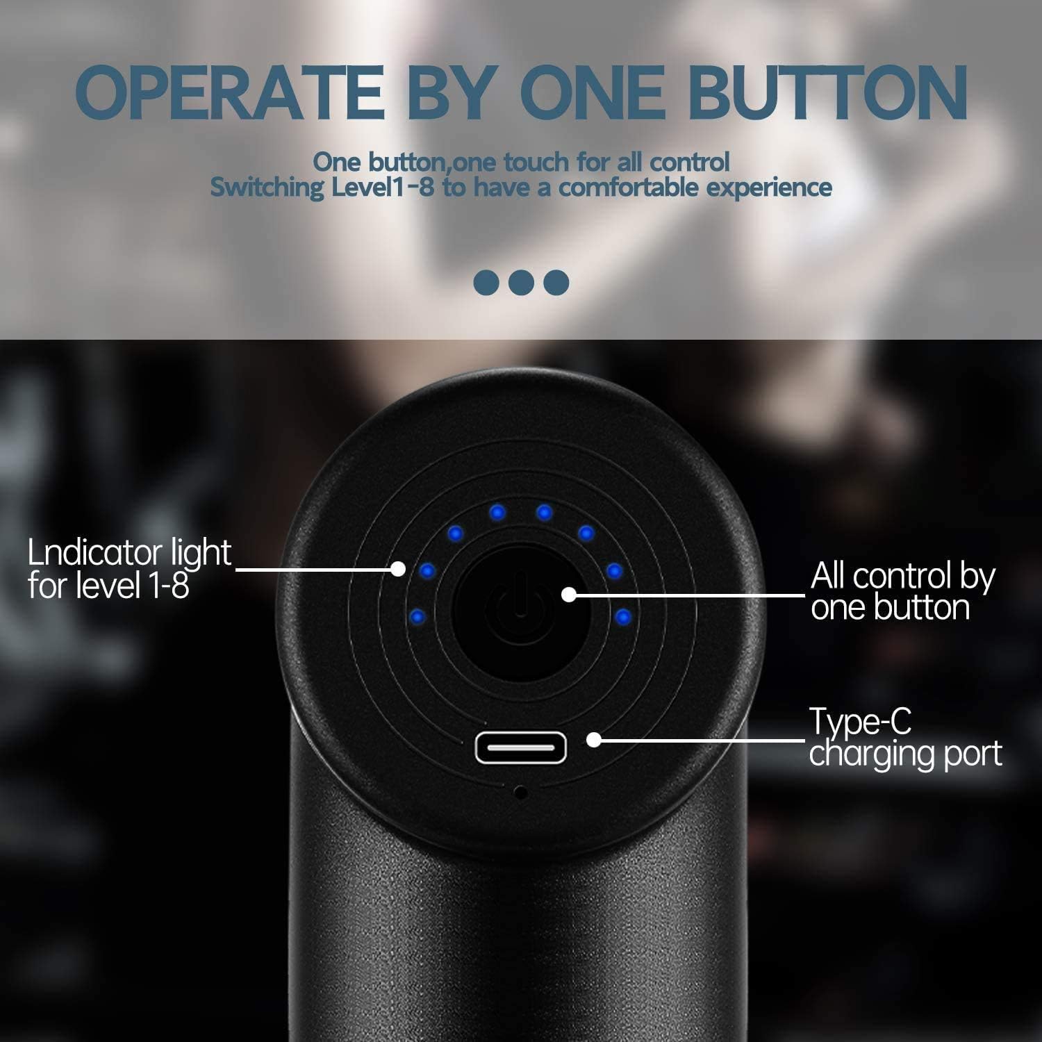A compact deep tissue massage gun designed to relieve muscle tension, improve circulation, and ease soreness in the neck, back, and body. Includes four interchangeable massage heads for personalized relief and daily recovery.